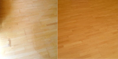 ![]() Alter Parkettfußboden vor und nach der Sanierung  (zum vergrößern Bild anklicken) |